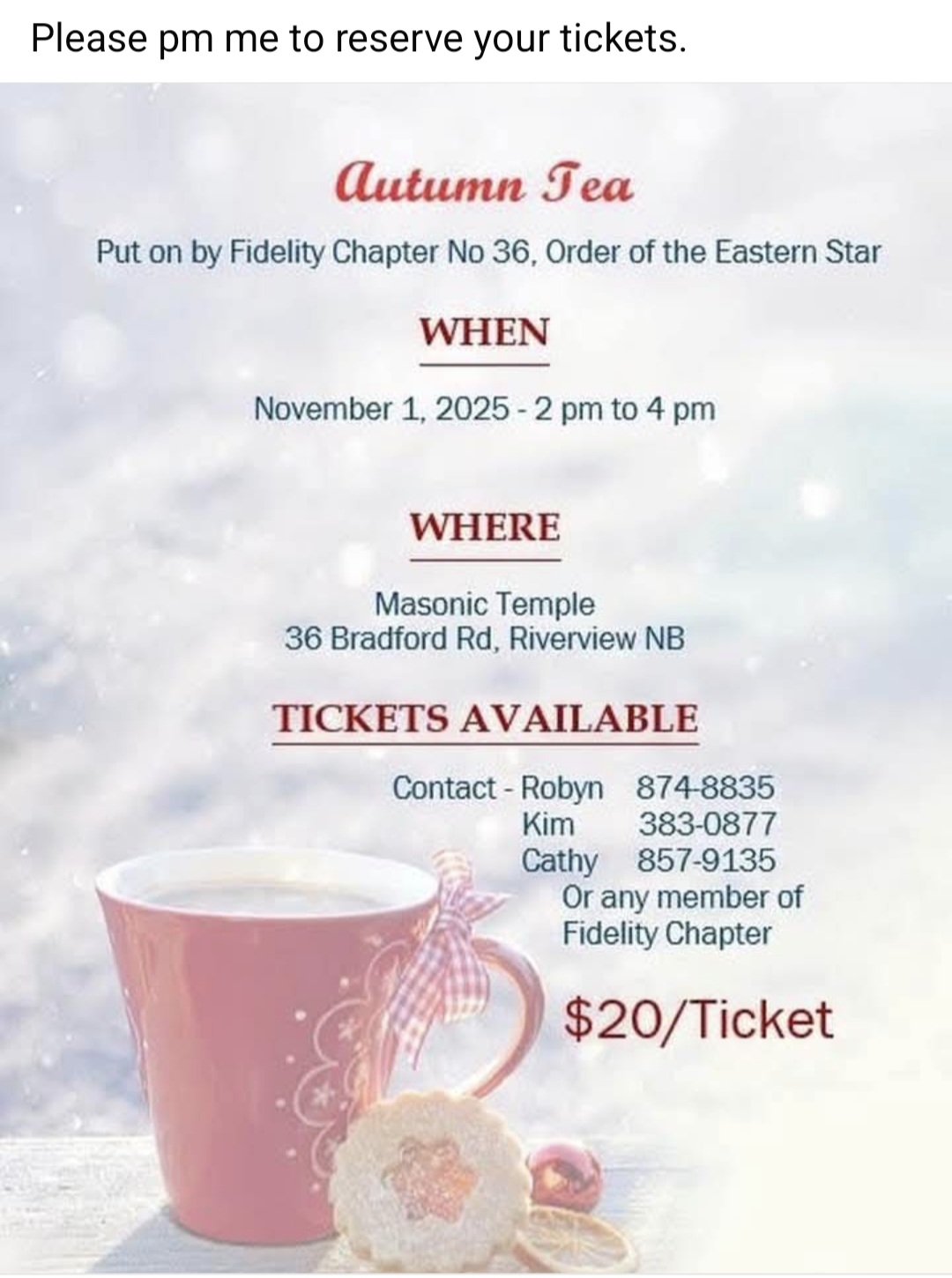 Location: Masonic Hall 907 Prospect St, Fredericton NB