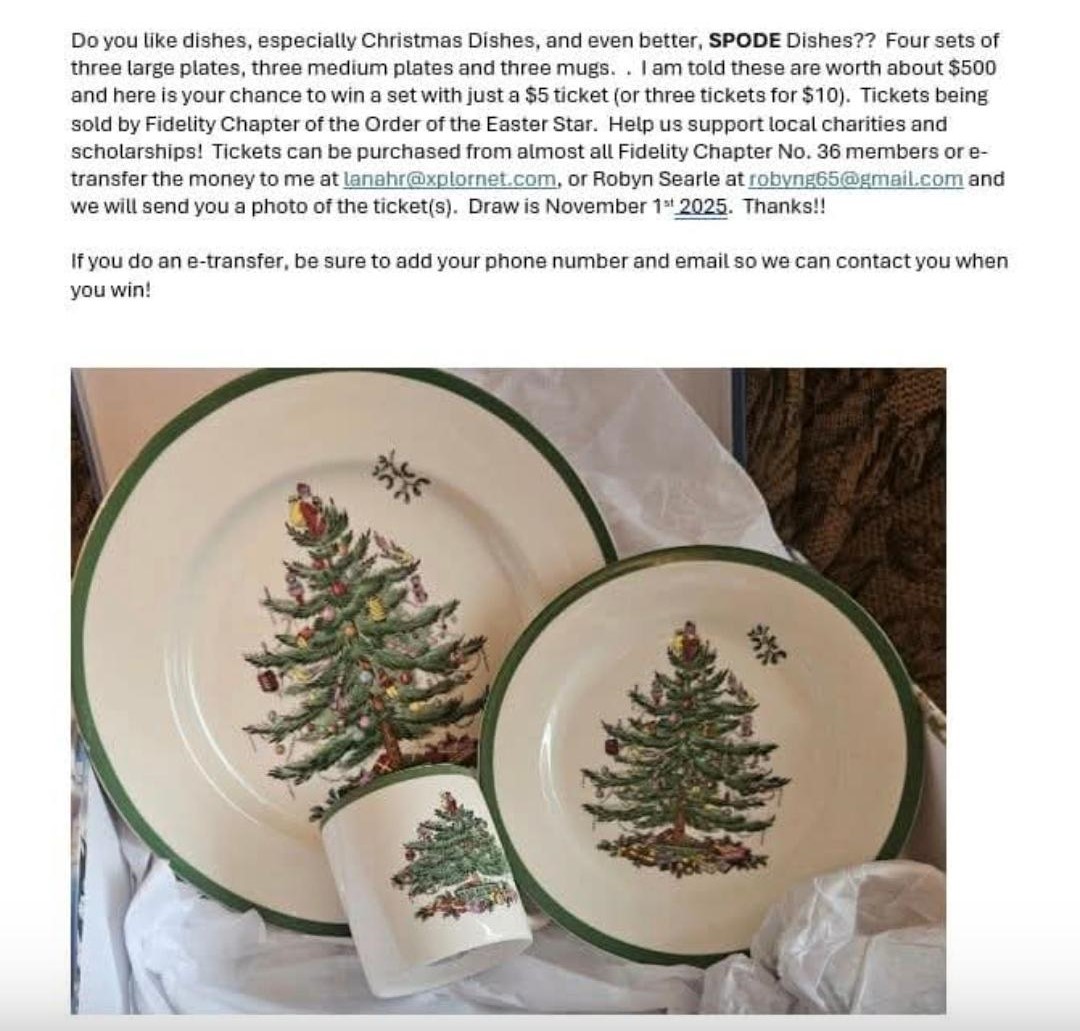 will be drawn on at Fidelity Chapter's Dec 2nd Meeting at Riverview, N.B.